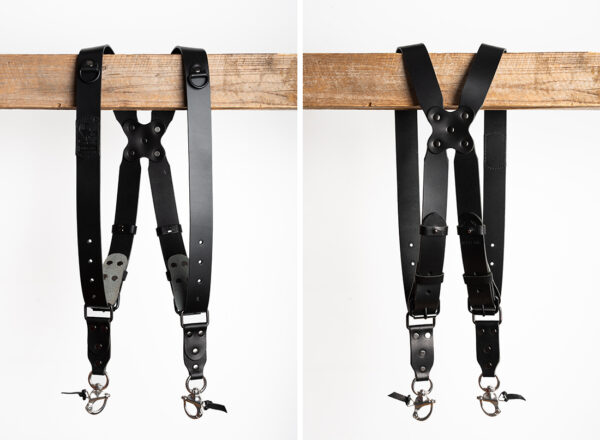 This universal system is everything you need when working with two cameras. From now on keep your cameras always close and switch them faster then ever before. Our system allows you to quickly slide the camera up and down on double-secured locks. Our classic design and tested solutions (combination of genuine leather, metal D-rings and rivets) guarantee both durability and professional look of the product.